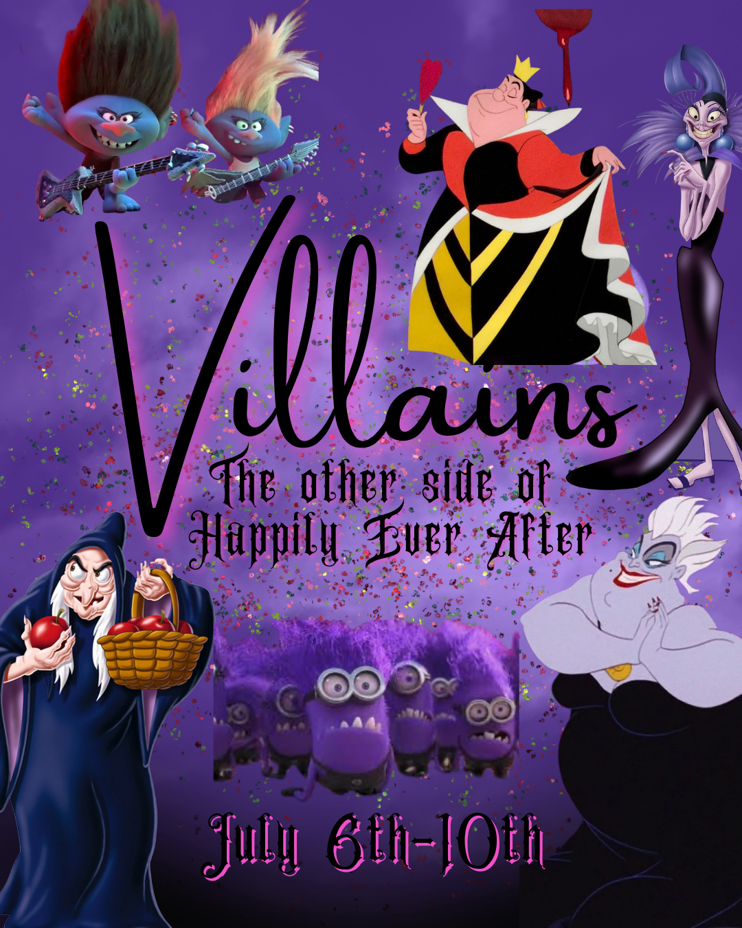 Our first camp of the summer, each dancer will get the chance to step into all their favourite villainous characters! Campers will step into the spotlight as iconic baddies and original masterminds, creating dramatic backstories, evil laughs, and over-the-top costumes! Throughout the week, we will design secret lairs, craft signature capes and masks, and competed in “Villain vs. Hero” themed games. From obstacle course “takeovers” to dramatic monologue battles, it is sure to be a week full of creativity, confidence and lots of mischievous fun!